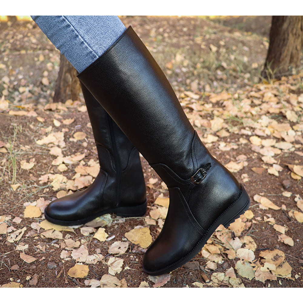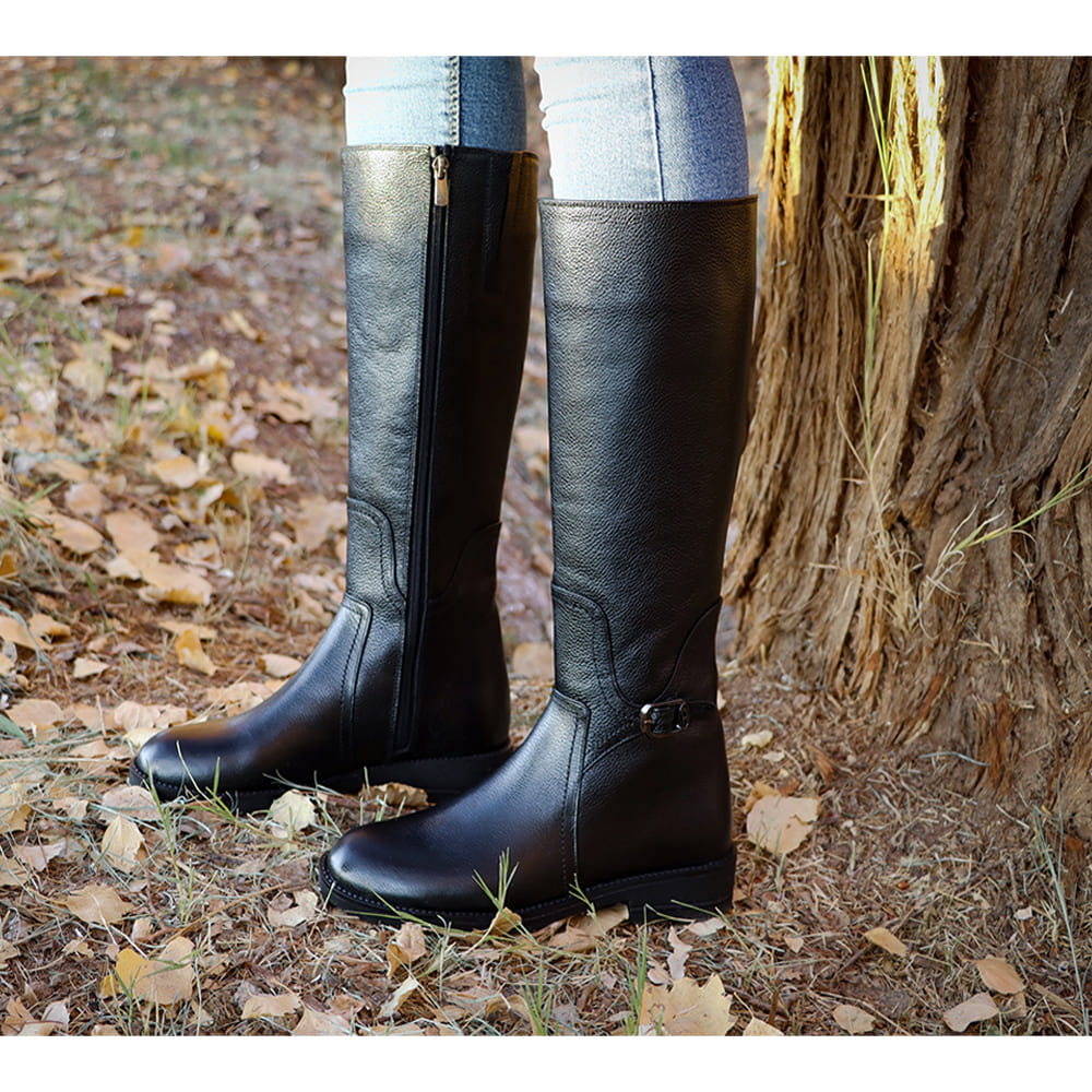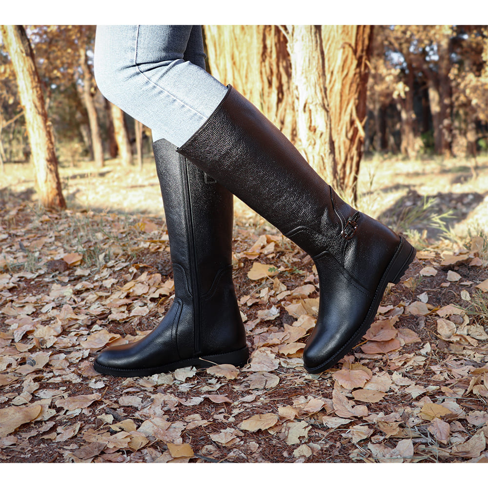 این بوت چرم طبیعی ساق بلند، ترکیبی از اصالت و زیبایی معاصر است. چرم نرم و لطیف آن، حس لوکس بودن را زیر دستانتان زنده میکند و طراحی ارگونومیک، تضمین میکند که در تمام طول روز راحت باشید.